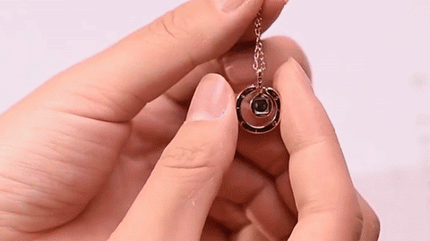 Features "I Love You" in 100 Languages engraved through nano microcarving. You can see it through every standard camera / smartphone lens! Project the center heart at a black background with your camera flashlight to show your love
